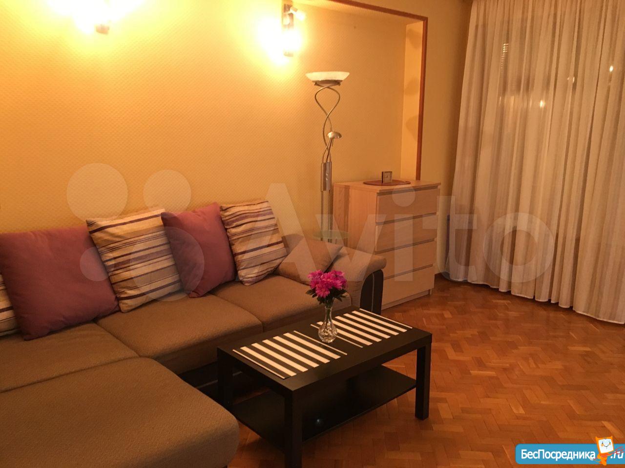 Сдает собственник. Без комиссий! Очень уютная однокомнатная квартира-СТУДИЯ. Просмотр с 24.04.25. Тихое место, хороший дом, видеонаблюдение вокруг дома, парковка, консьерж. Квартира очень светлая с хорошим ремонтом, экологичные материалы отделки, кондиционер, интернет, триколор. Идеальна чистота, никаких запахов. В квартире хочется находиться, прекрасно спится, хорошая аура. Большая гардеробная комната. Есть все необходимое для комфортного проживания. Рассмотрим не более двух человек, . Строго НЕКУРЯЩИМ! Предоплата за первый и депозит. Звонить можно с 10.00 до 22.00 час. Просьба агентам звонить только при наличии реальных клиентов, сотрудничество не предлагать! Не тратье мое и свое время!