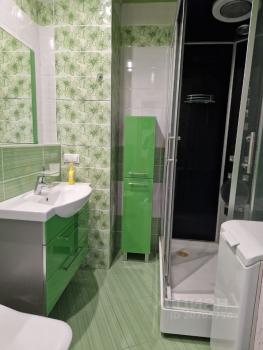 Из мебели и оборудования - зеркальные шкафы-купе в зале и прихожей, современный комфортный "3-местный+козетка" ортопедический диван-кровать Аскона, кухня IKEA и современная душевая кабина с мультимедиа. Есть стиральная машина вместе с сушкой белья Electrolux, холодильник Bosch (высота - 2 метра). В столовой - дополнительное место для отдыха или спальное место: современный комфортный "2-местный" ортопедический диван-кровать Аскона.
