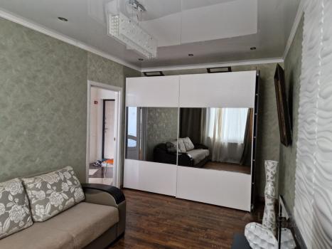 Уютная двухкомнатная квартира после ремонта, распашонка, третий этаж. Два санузла, застекленная лоджия с турником, гардеробная, каждая комната оборудована кондиционером. Стиральная, посудомоечная машины, холодильник, микроволновая печь, варочная панель. На кухне установлен трехуровневый фильтр для подачи питьевой воды. Теплые полы на кухне, в ванной и прихожей.