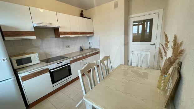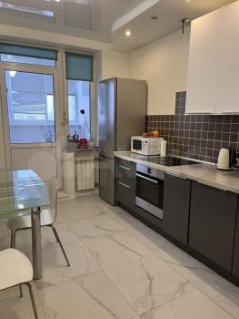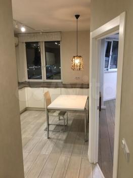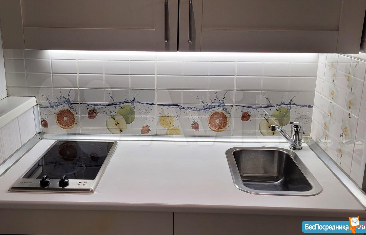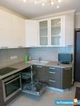 Кухня: гарнитур мебельный (Германия), мойка и сантехника (Германия), фильтр для питьевой воды Atoll (США), плита индукционная, посудомойка, вытяжка, стол обеденный (раздвижной), стул кухонный (1 шт.), кондиционер (Япония), тёплый пол (кафельная плитка), регулятор тёплого пола (Швеция), оптика для wi-fi и цифрового ТВ, рулонная штора на окне.