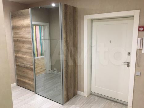 − Большой зеркальный 3-секционный шкаф-купе в зале с дополнительным внутренним пространством в глубине шкафа-купе (общий размер шкафа 2100*1200 мм2);