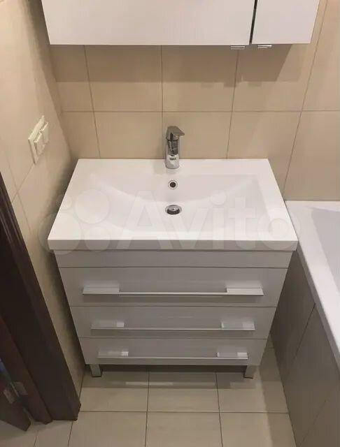 Санузел: раковина, подвесная тумба под раковину, смеситель, ванная, смеситель для ванной с душевым гарнитуром, полотенцесушитель, унитаз настенный, ниша для установки стиральной и сушильной машины, бойлер накопительный (на случай отключения городом горячей воды для профилактики системы горячего водоснабжения).