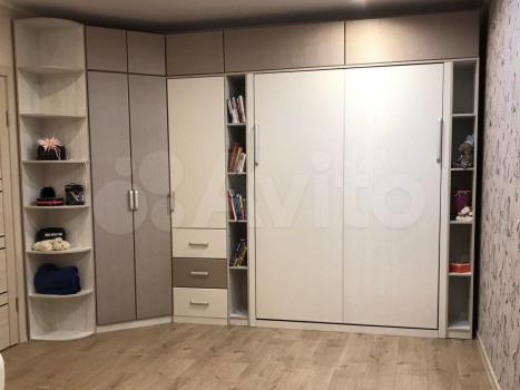 Кухня с индукционной плитой и эл.духовкой, посудомоечная машина, система водоочистки обратный осмос, холодильник no frost, стиральная машина 6кг, двуспальная кровать с матрасом и подъемн.механизмом, тумбы, шкафы, полки, комоды, 2 односпальные кровати с матрасами, письменные столы, кресла, стулья, компьютерное поворотное кресло, раскладной диван, тв гарнитур, 4 ЖК телевизора (55", 55", 32", 32"), 2 wifi роутера, напольные покрытия во всех комнатах, 2 застекленные лоджии со встроенными системами хранения.
