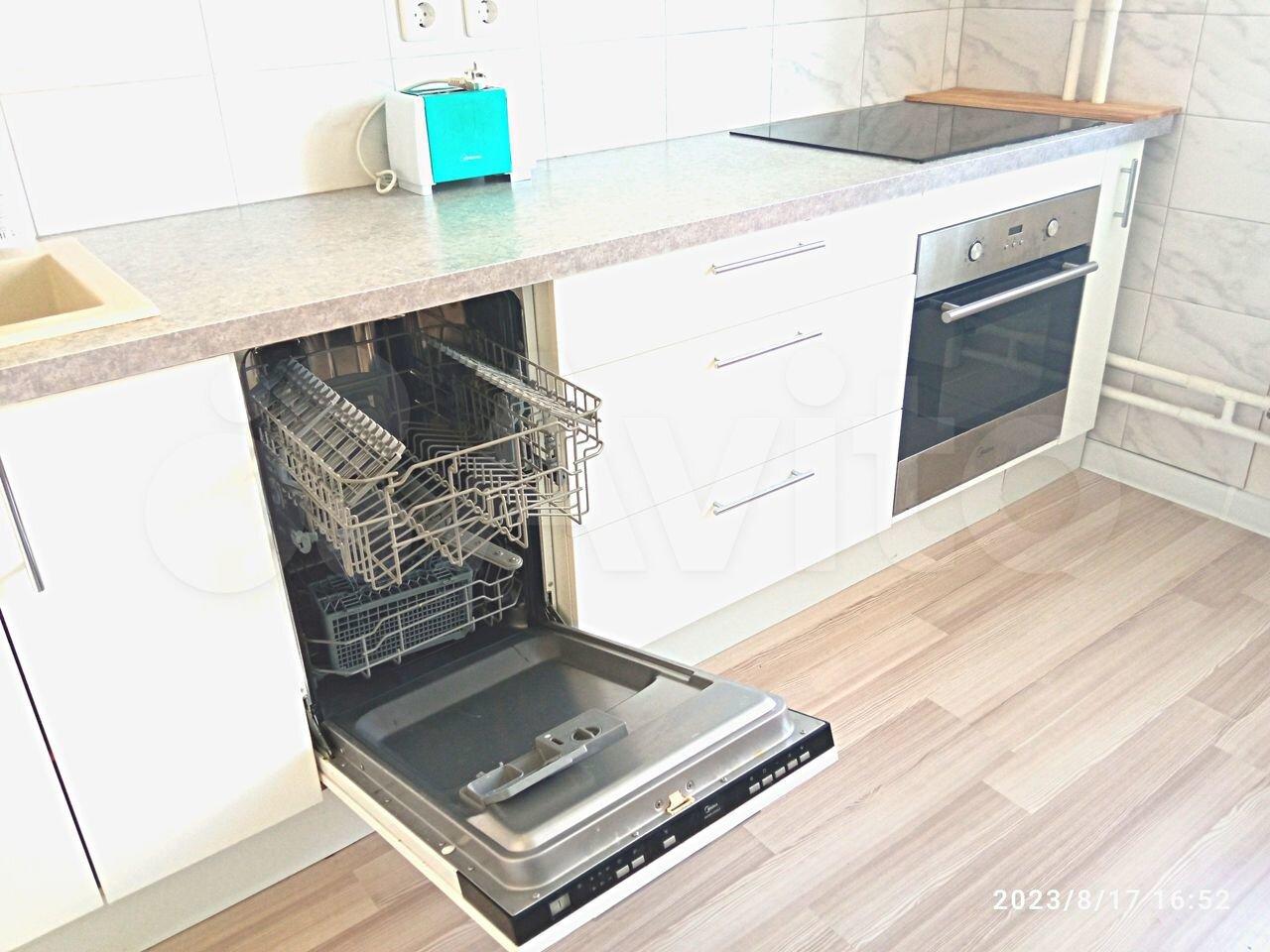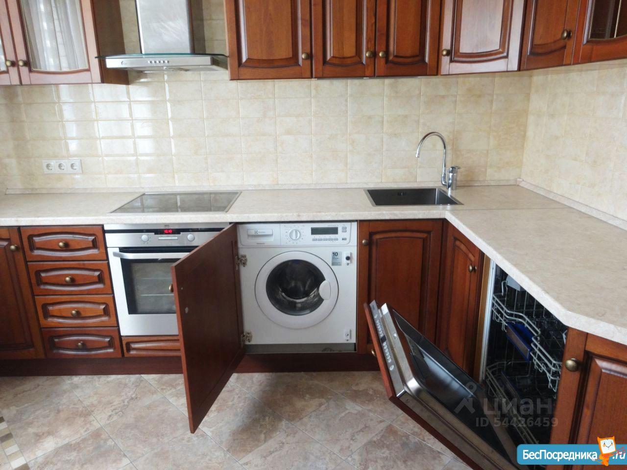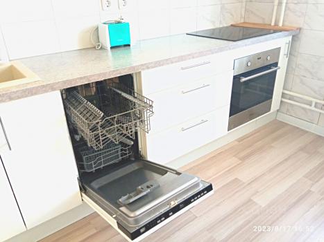 Укомплектована: холодильник, варочная понель, духовой шкаф, микроволновка, посудомоечная машина, стиральная машина.