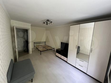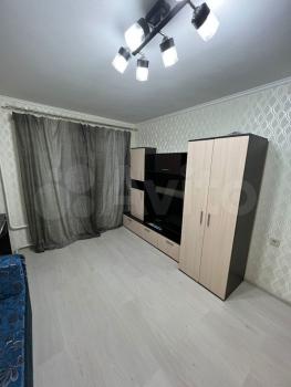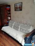 В комнате минималистично, имеется диван, стол, шкаф и зеркало. В самой квартире есть все необходимое, техника в хорошем состоянии, норм ремонт.