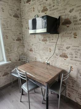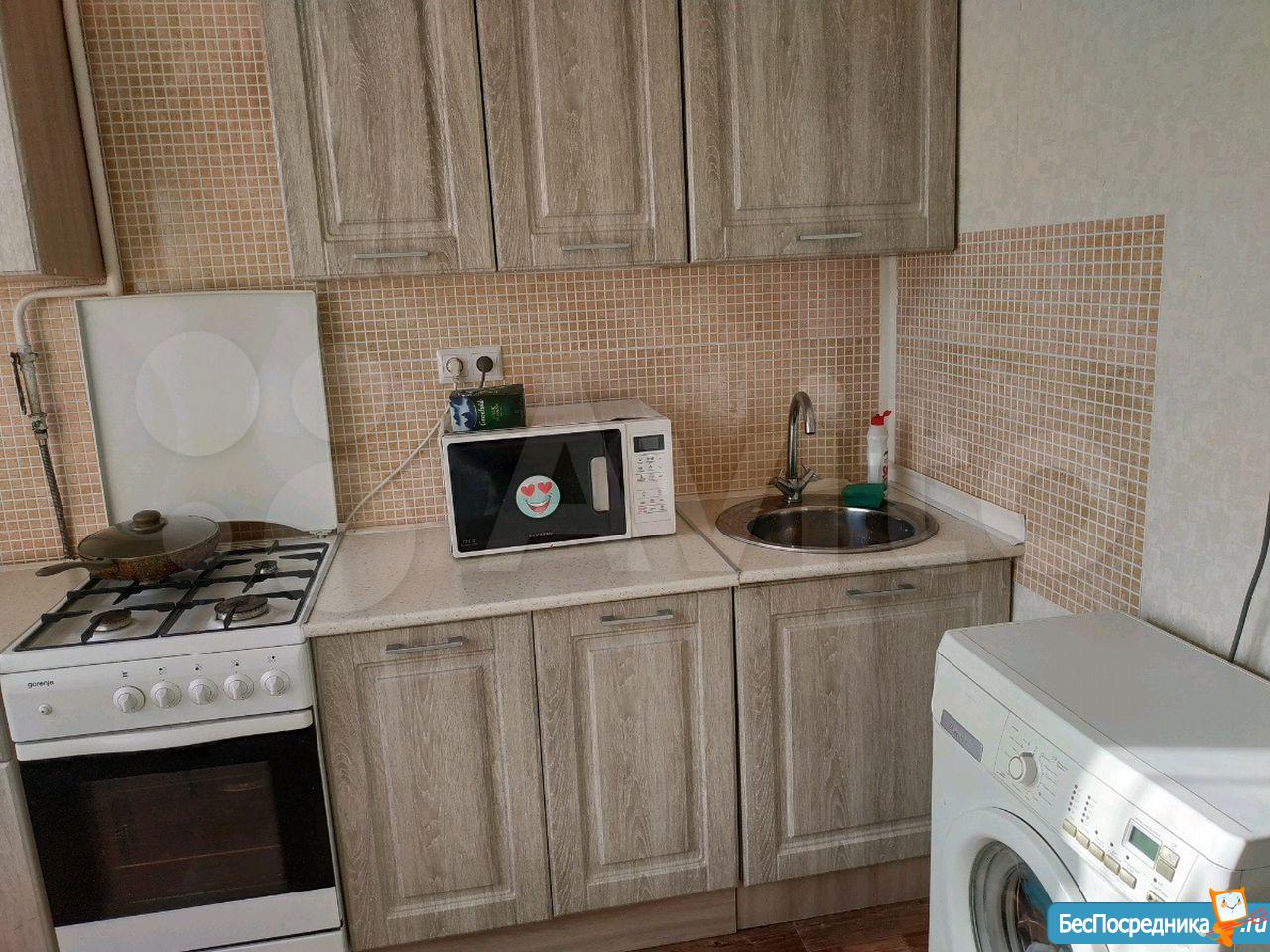 В квартире и в комнате есть все необходимое для комфортного проживания. Стол, диван, шкаф, холодильник, стиральная машина, микроволновая печь.