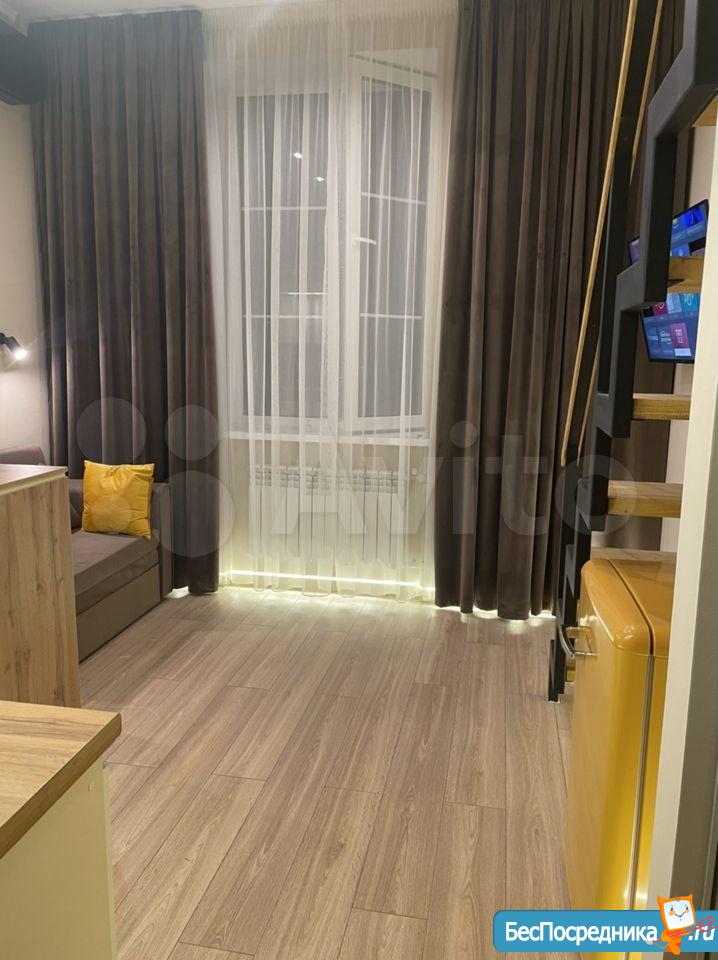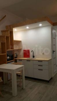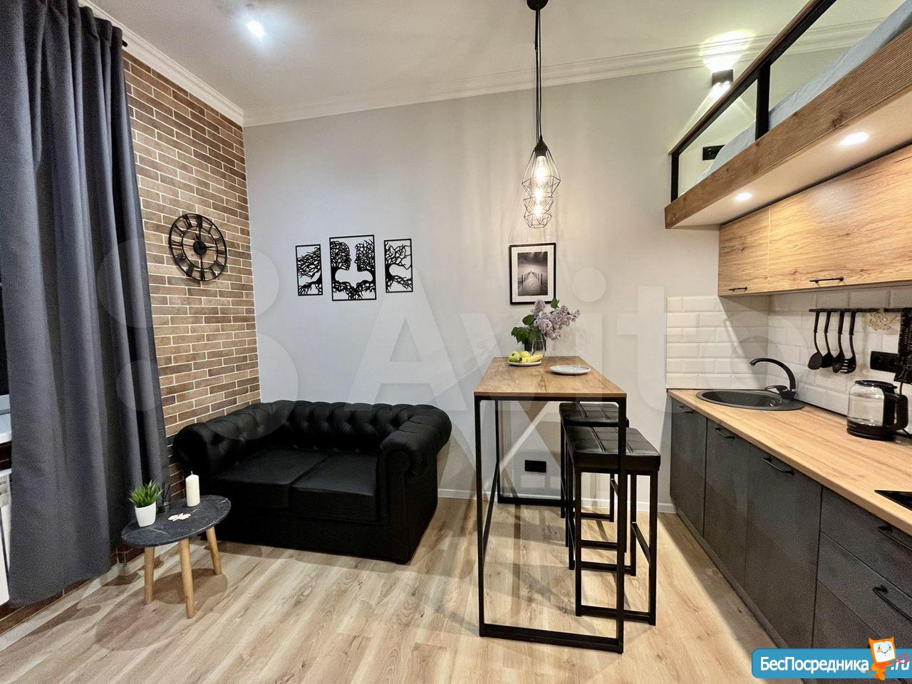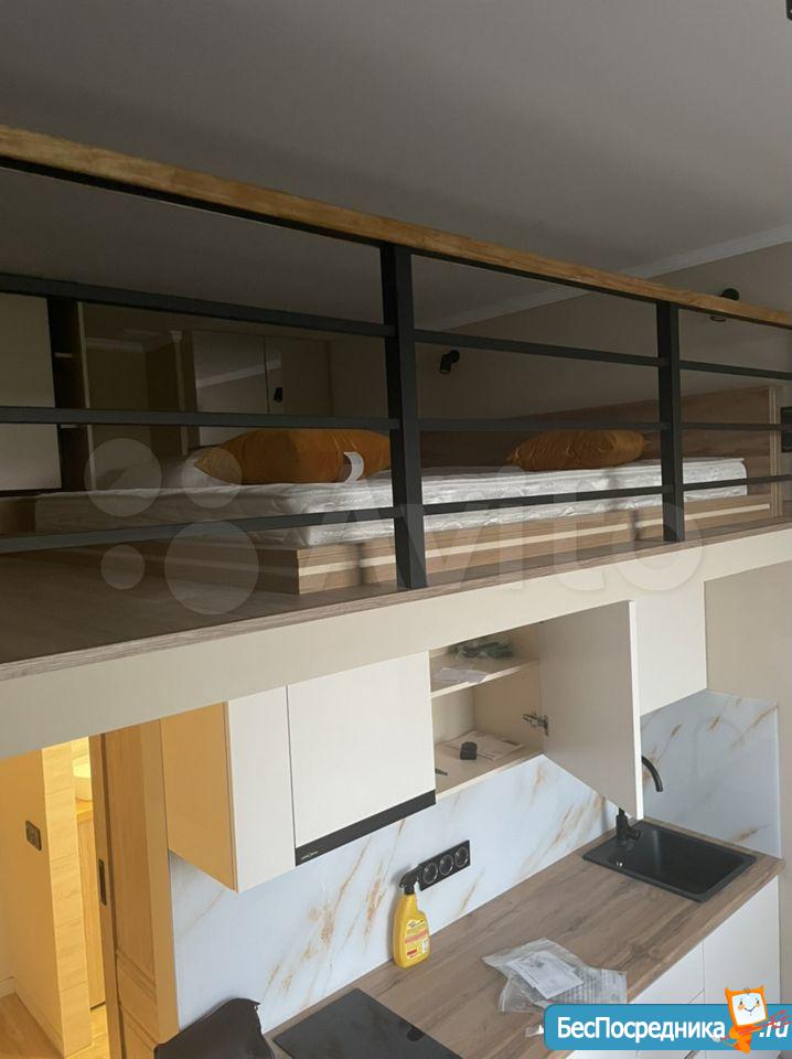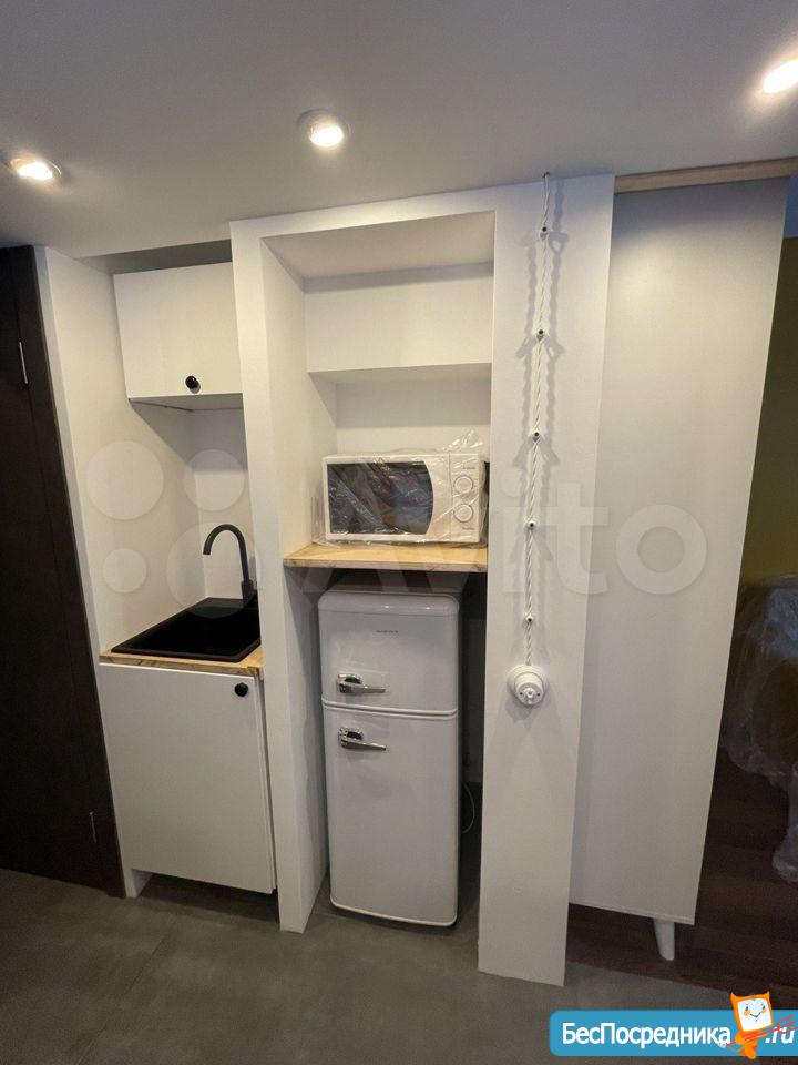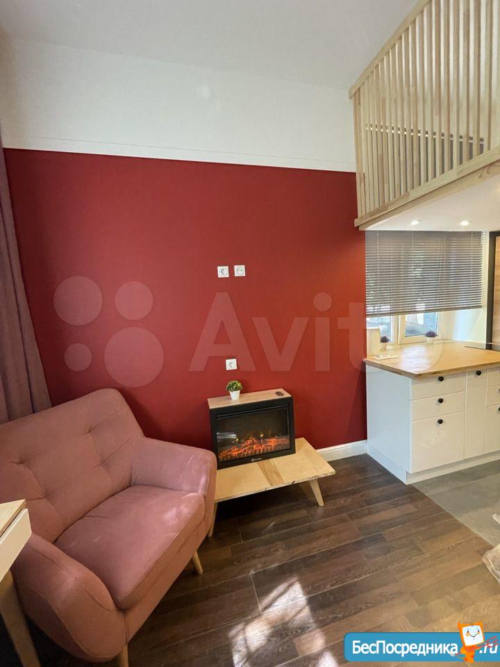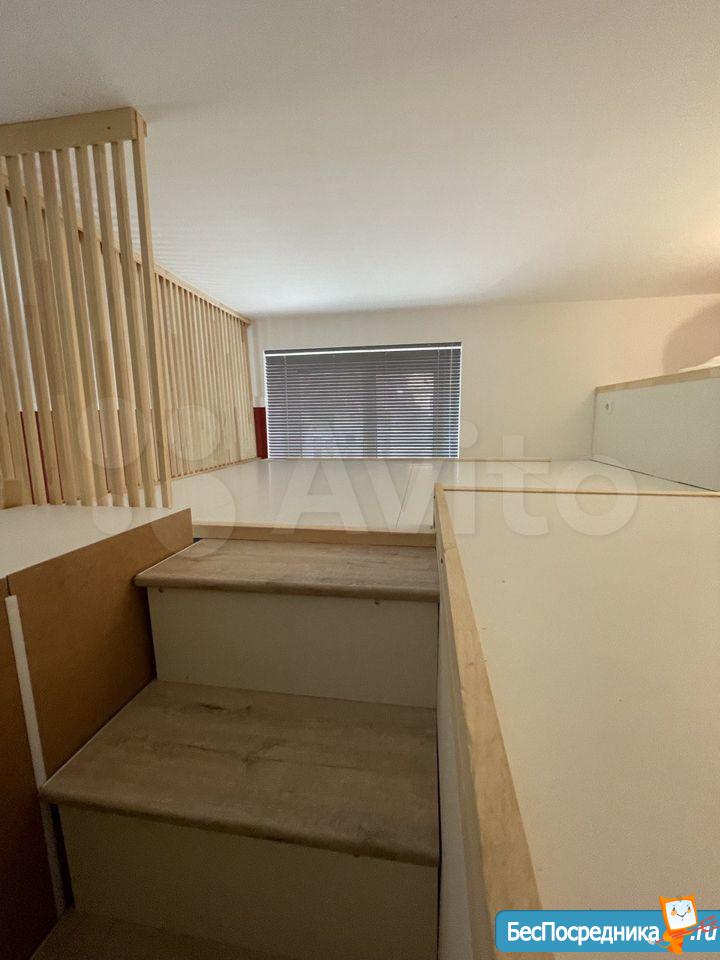 Свежий ремонт, вся мебель новая, студия готова к заезду. Здание кирпичное, стены толстые, отопление хорошее, зимой тепло, летом не жарко. В студии есть оборудованная кухня (холодильник, Микроволновка, плита, чайник, мойка), обеденная зона, ванная комната (с душевой кабиной и стиральной машинкой), второй уровень - антресоль, со спальным местом (матрас новый), на первом этаже также бескаркасный диван-кровать. Аренда по контракту. Возможна краткосрочная (от 1 месяца) и долгосрочная (до 1 года).