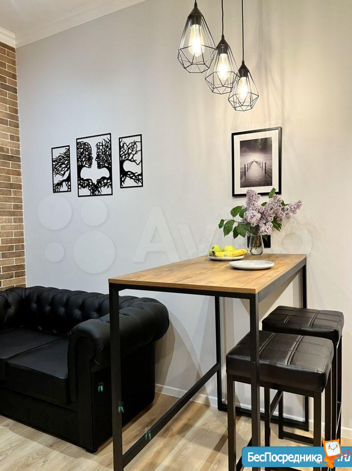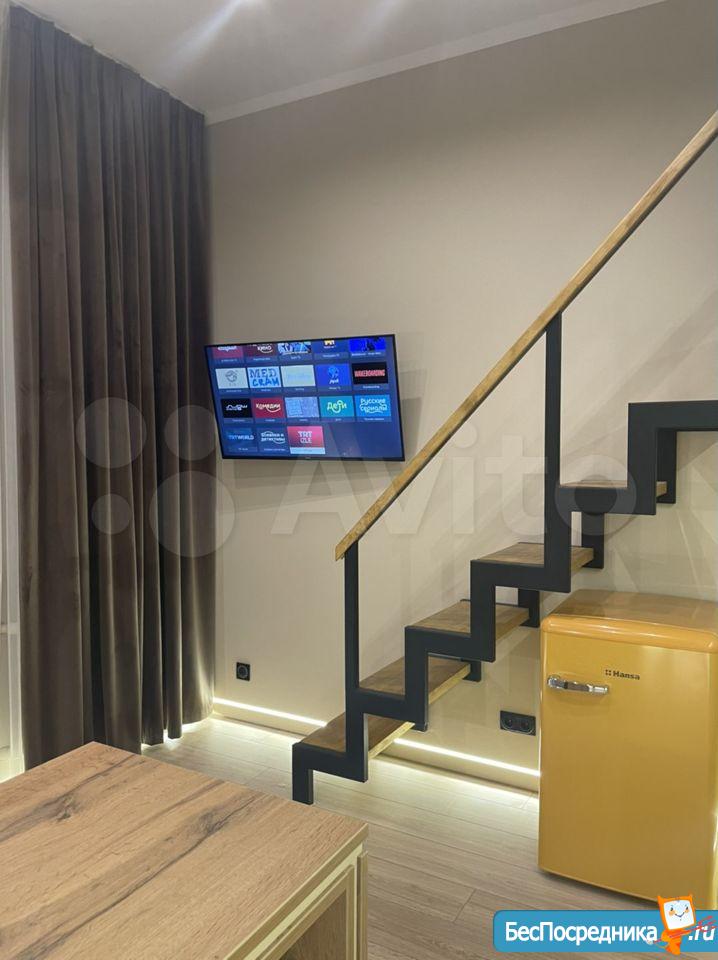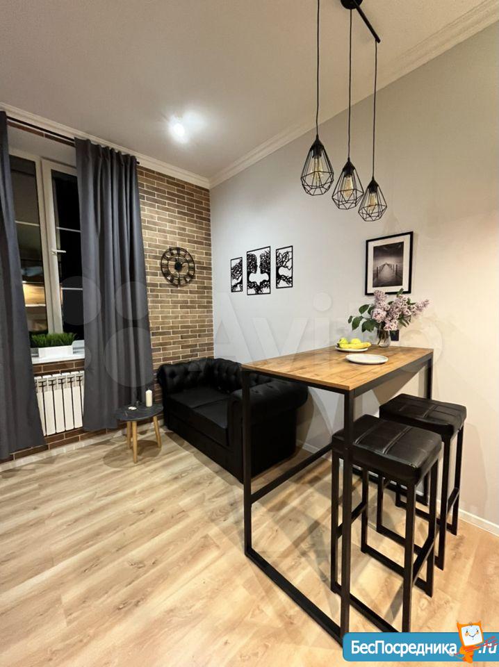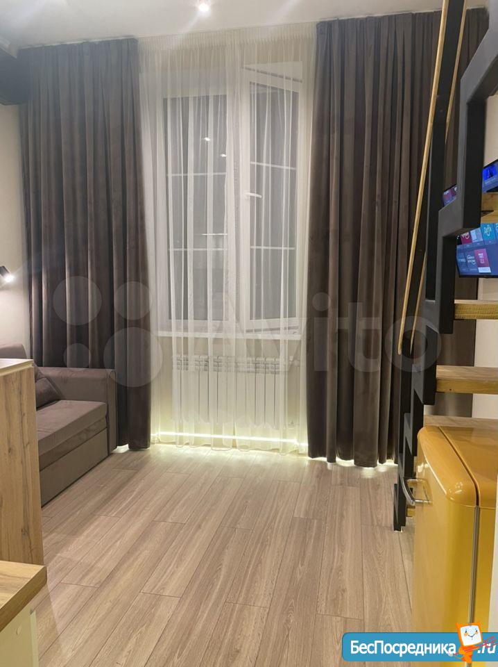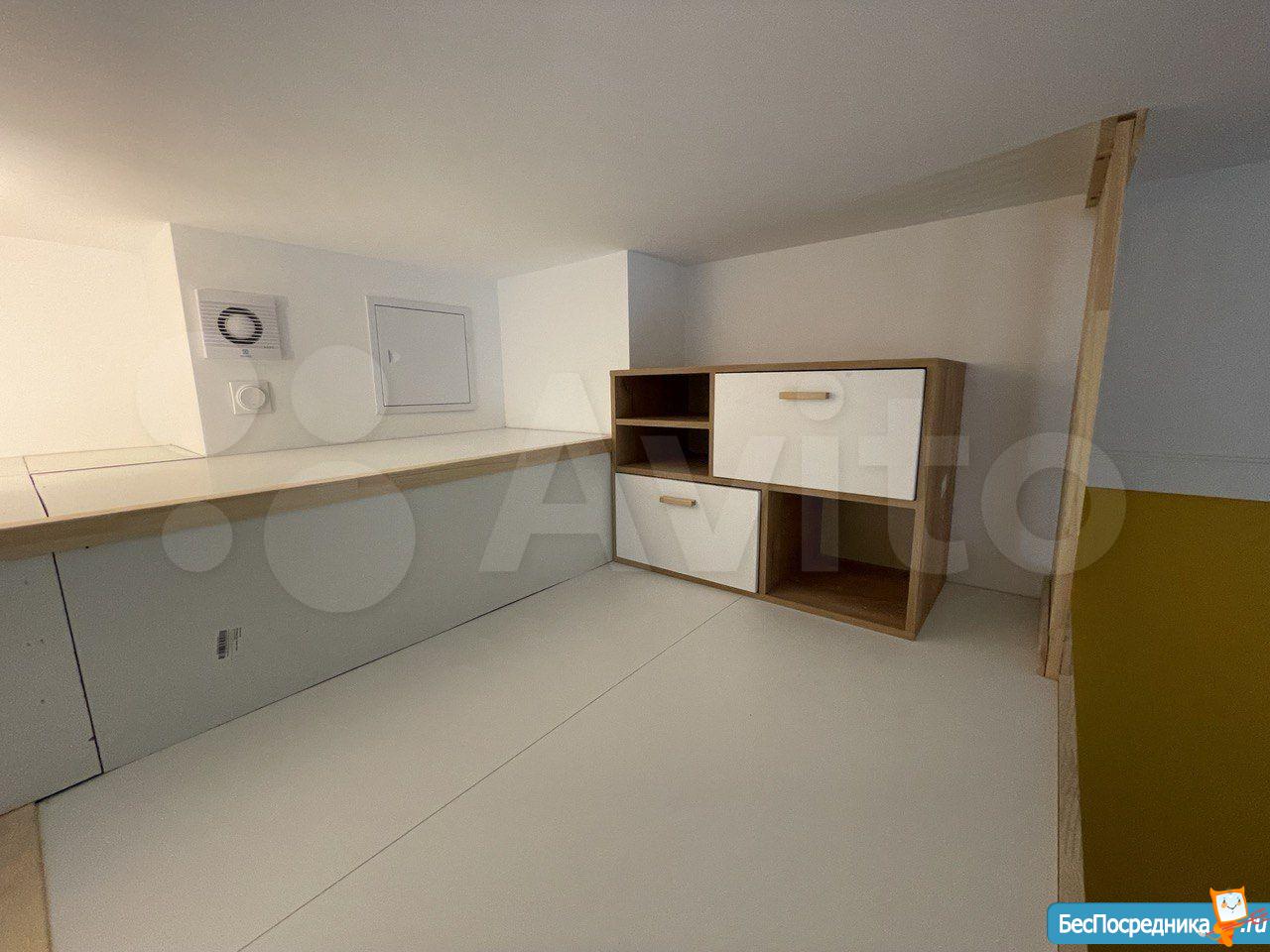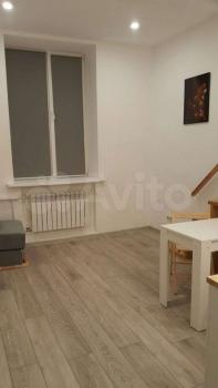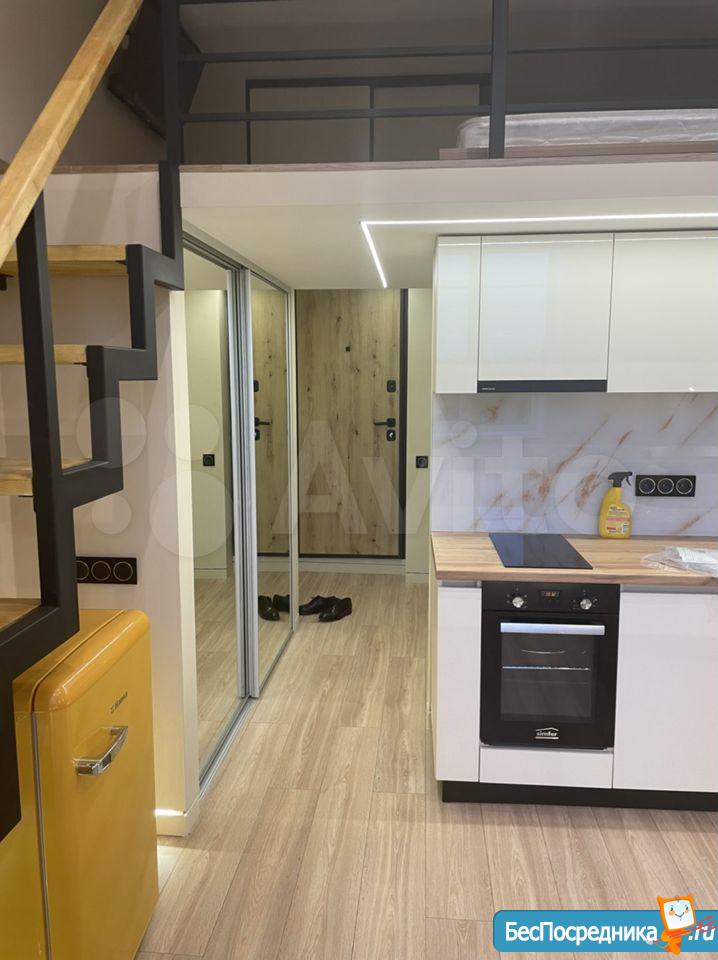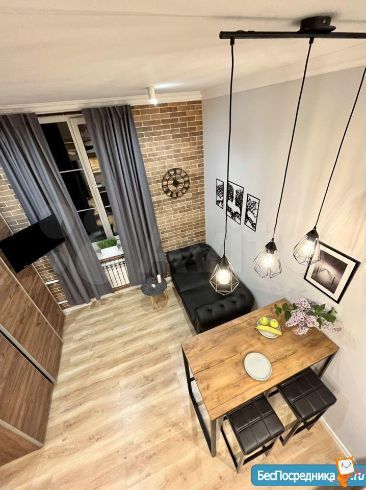 Свежий ремонт, вся мебель новая, студия готова к заезду. Здание кирпичное, стены толстые, отопление хорошее, зимой тепло, летом не жарко. В студии есть оборудованная кухня (холодильник, Микроволновка, плита, чайник, мойка), обеденная зона, ванная комната (с душевой кабиной и стиральной машинкой), второй уровень - антресоль, со спальным местом (матрас новый), на первом этаже также бескаркасный диван-кровать. Аренда по контракту. Возможна краткосрочная (от 1 месяца) и долгосрочная (до 1 года).