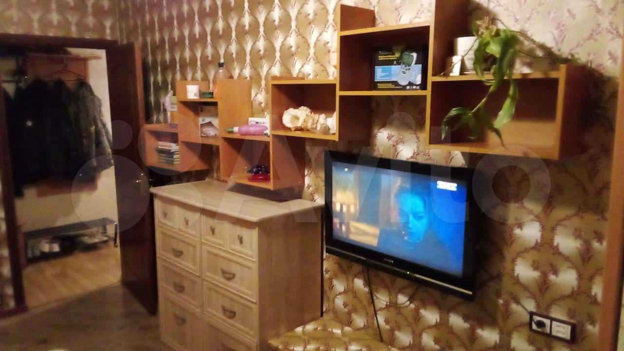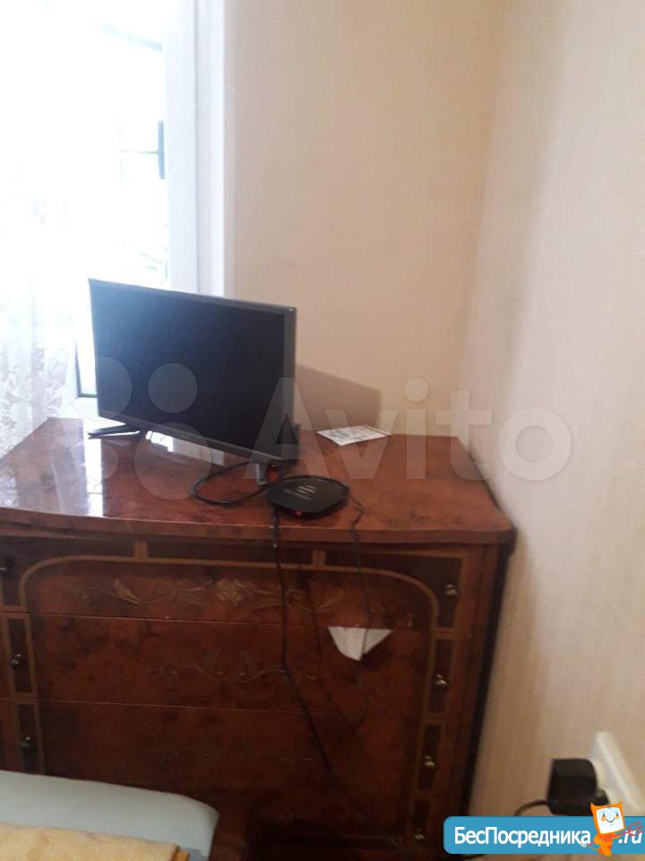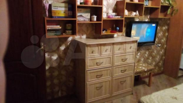 В комнате диван, два шкафа, телевизор, комод и навесные полки. Окна выходят во двор, тихо. Есть интернет.
