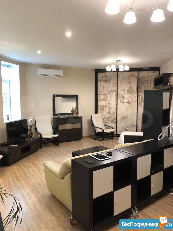 Сдаётся 1 комнатная квартира с евроремонтом студийного типа, в доме бизнес класса, в прекрасном зеленом тихом районе. Квартира чистая, просторная, тихая и уютная, со всеми удобствами. Исключительно рассматриваются добропорядочные, чистоплотные люди без животных.