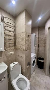 В квартире сделан косметический ремонт. Здесь есть все необходимое для комфортного проживания: кондиционер, холодильник, телевизор и стиральная машина. На кухне и в комнате установлена мебель. Санузел совмещенный, оборудован ванной. Для удобства жильцов в доме работает мусоропровод и два пассажирских лифта. Доступен интернет.
