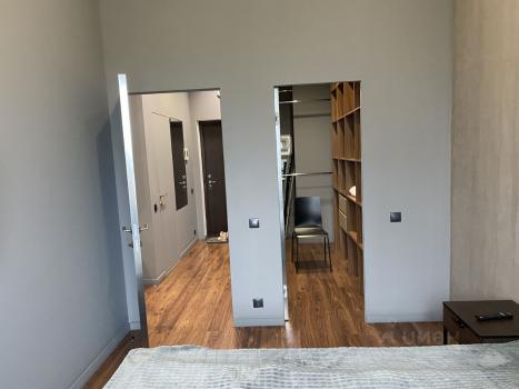 Большая гардеробная 5 м, квартира укомплектована всей мебелью и бытовой техникой, в спальне панорамное окно. Кровать 160х200 с ортопедическим матрасом Орматек. В кухне-гостиной двуспальный диван, Smart TV Toshiba.