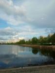 На против дома парк с водоемом и спорт площадка с тренажёрамм.От метро идти мин 20 или 3 остановки на транспорте