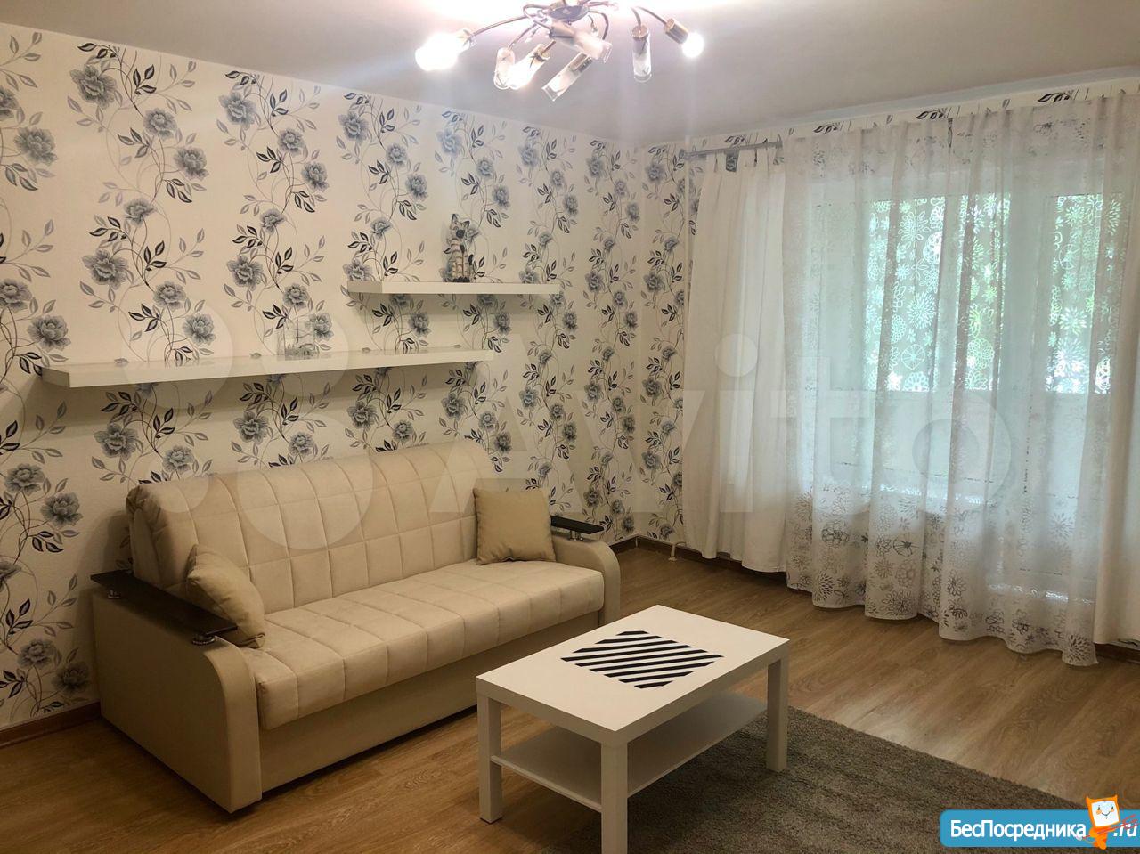 Сдаётся просторная 1-комнатная квартира ОТ СОБСТВЕННИКА в районе с развитой инфраструктурой - магазины, банки, поликлиники, остановка транспорта, рядом пруд и парк) квартира с встроенной кухней с варочной поверхностью и духовым шкафом Electrolux, новый холодильник Hotpoint-Ariston, вытяжка, мойка из камня Blanco, фильтр для воды) ванная и туалет с хорошей сантехникой и плиткой) просторная комната с новыми диваном, шкафом, министенкой, телевизор Philips, застекленная стеклопакетами лоджия) металлическая дверь, оборудованная прихожая, стиральная машина) рассматриваются славяне без детей и животных)