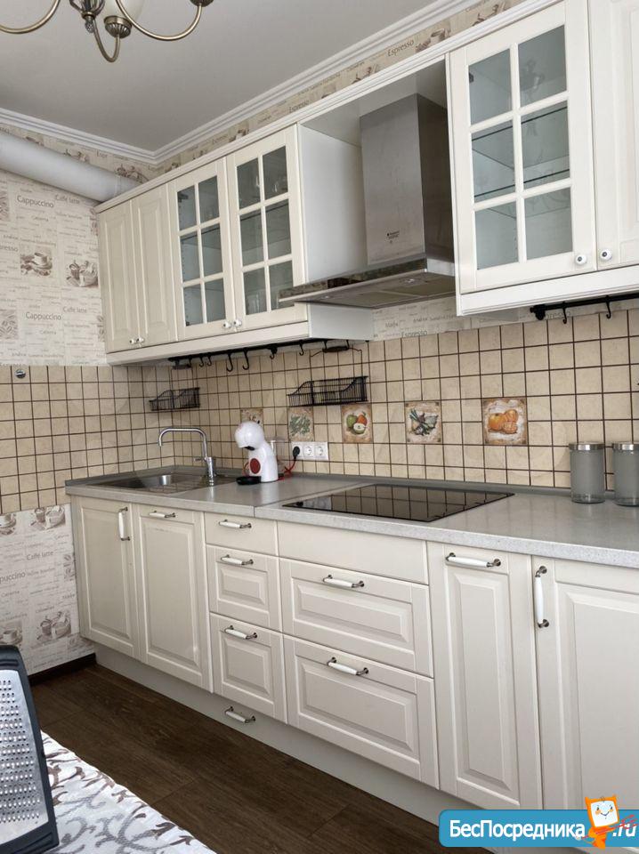 Кухня: встроенная белая - икеа, стол и кухонный уголок, кухня оснащена бытовой техникой - варочная поверхность индукция Electrolux, вытяжка, посудомоечная машина Bosch и холодильник Stinol (нет духовки).