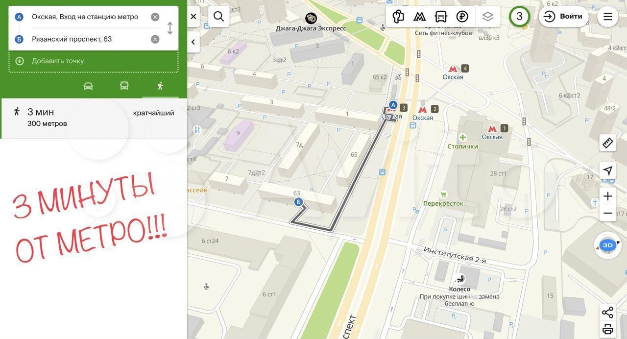 До метро Окская 5 минут пешком.