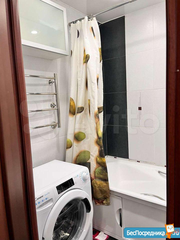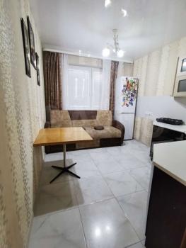 Квартира с евроремонтом, комнаты светлые и уютные. На кухне и в комнате есть необходимая мебель. Из бытовой техники в наличии: холодильник, посудомоечная машина, микроволновка, измельчитель мусора в раковине, телевизор и стиральная машина. В ванной комнате установлена ванна, санузел совмещённый. Окна выходят на улицу, поэтому в квартире всегда много света.