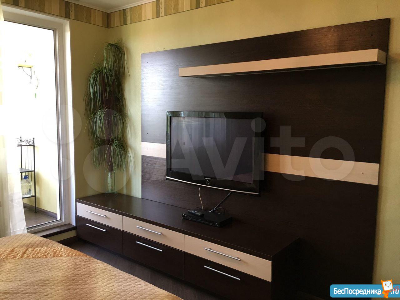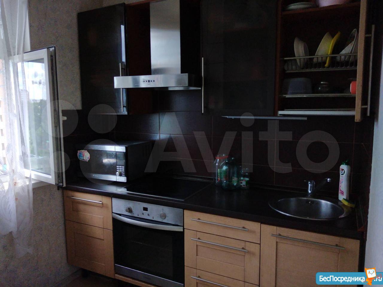 На кухне 2хспальный диван,телевизор,в комнате 2х спальная кровать,шкаф купе с зеркалами,лес, бассейн, 5чка рядом, дет.сад, школа, сетевые магазины окей, Леруа Мерлен, дикси, магнит, детский мир, огромный торговый комплекс, поликлиника соврем.,остановка автобуса конечная напротив подъезда,окна пластик.во двор.Плита керамика, кондиционер,домофон,металлич.дверь, лоджия застекл.,стеклопакеты.