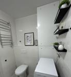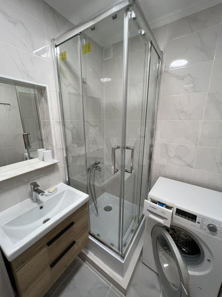 На кухне новая встраивая техника (газовая плита и электрический духовой шкаф), холодильник, чайник. Есть вся необходимая посуда. В ванной хорошая стиральная машинка Bosch.