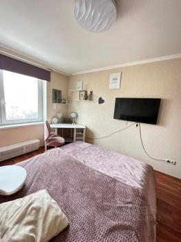 Комнаты смежные. Гостиная объединена с коридором (студия). В спальне незастеклённая лоджия, которую летом можно очень уютно обустроить. В спальне есть кондиционер.