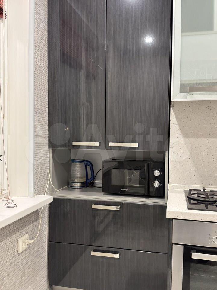 В квартире есть все необходимое: духовка Бош, холодильник, стиральная машина, микроволновка, чайник, кондиционер, телевизор, установлены хорошие стеклопакеты, хорошая сантехника. Из мебели: удобный угловой диван, огромный шкаф купе в комнате и поменьше в прихожей.