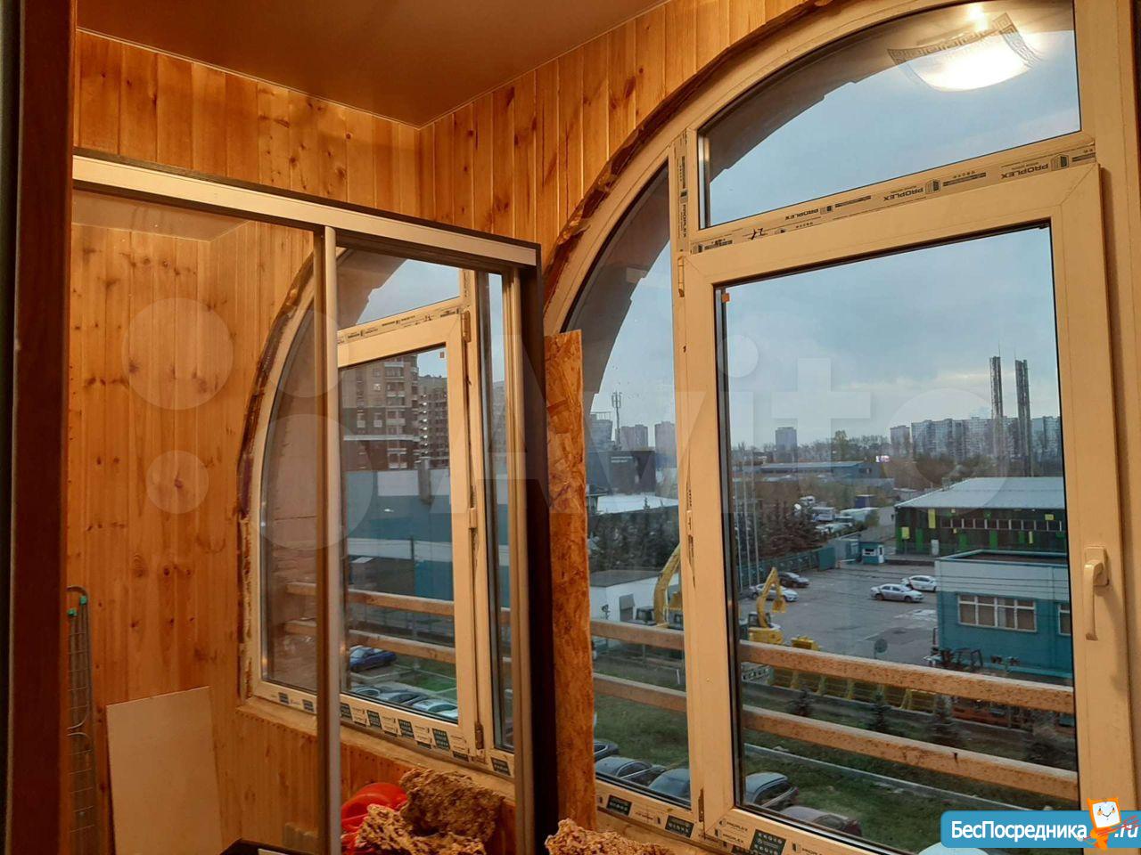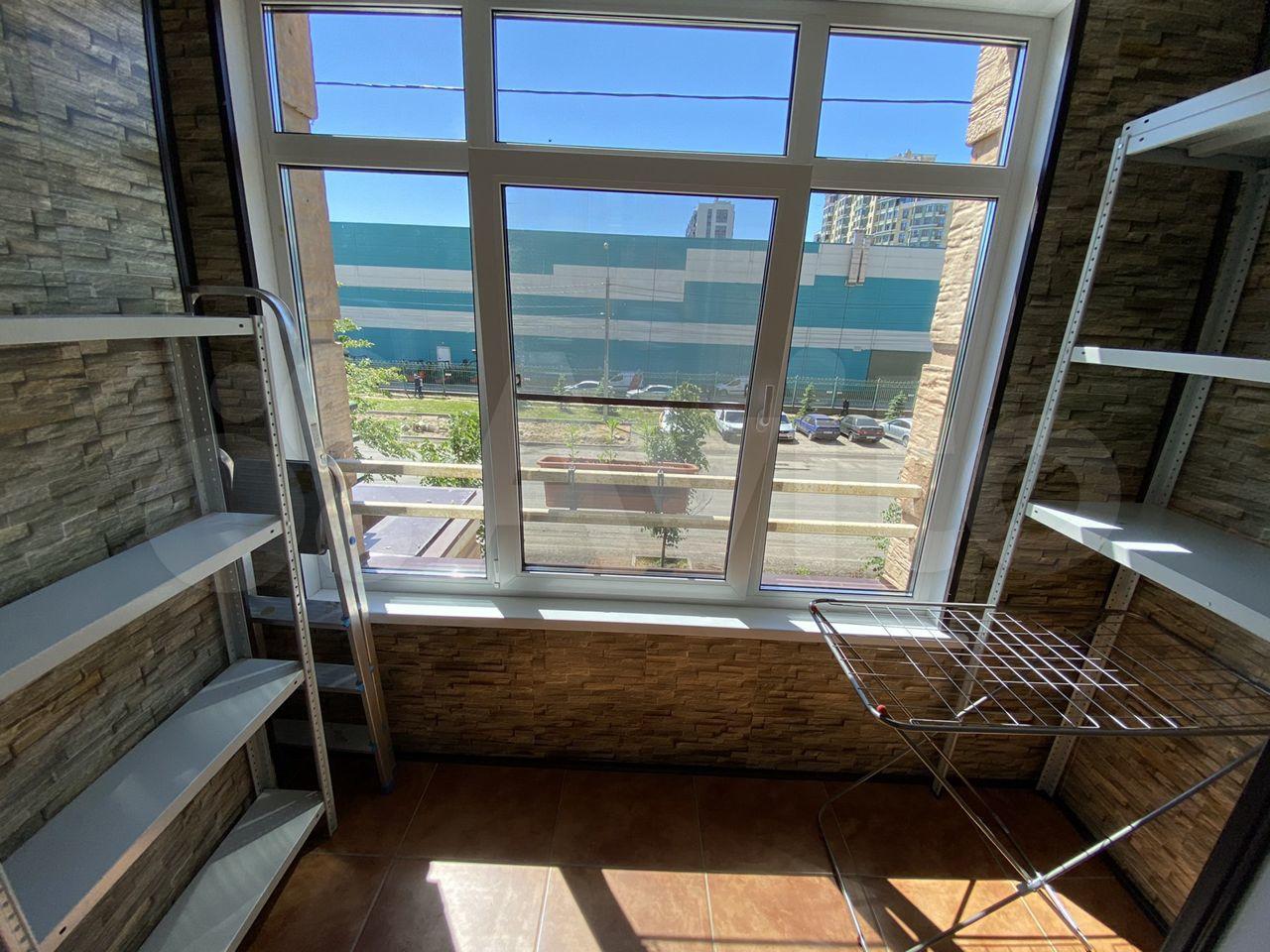 Санузел раздельный с полноценной ванной, широкий застекленный балкон в торцах которого два удобных стеллажа .