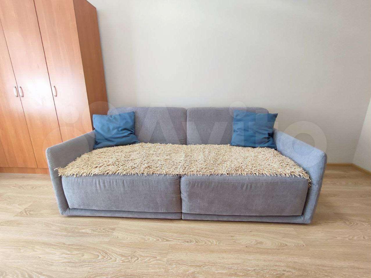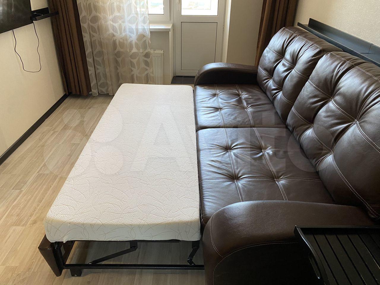 В комнате имеется вместительный встроенный шкаф-купе, ,большой раскладывающийся кожаный диван.