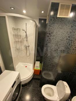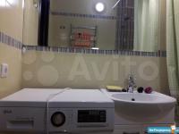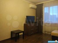 Квартира большая по площади - 45 кв.м. вместе с балконом. Балкон застеклён. В квартире евроремонт. Комната просторная правильной прямоугольной формы с кондиционером. Кухня со всей необходимой встроенной техникой (плита и холодильник Bosch). Помимо необходимой мебели, есть нужные бытовые приборы, включая чайник, микроволновую печь и утюг. В квартире два коридора: один - с большой освещённой гардеробной, другой - со встроенным шкафом от пола до потолка. С/у раздельный, ванная и туалетная комнаты большие.