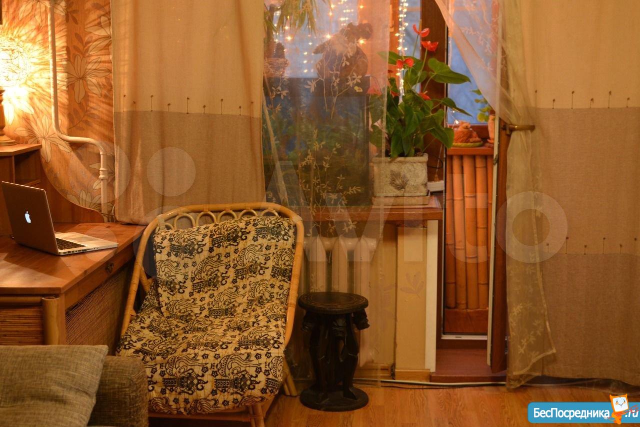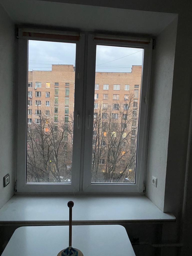 Старый район Москвы. Тихий, зеленый двор с новой детской площадкой. 5 этаж 9 этажного кирпичного дома, Кооперативный дом работников Железной Дороги. Все друг друга знают, дружат и ходят в гости. Окна во внутренний двор с деревьями, ветки которых доходят практически до балкона. Сам балкон застеклен и отделан стволами бамбука.