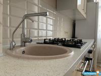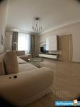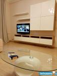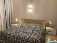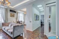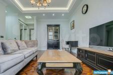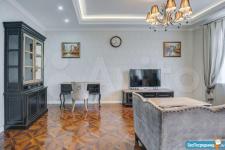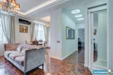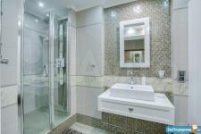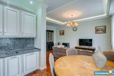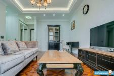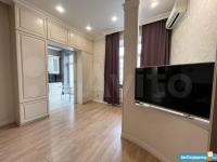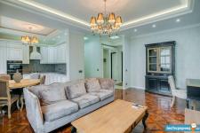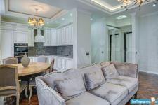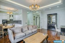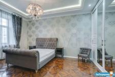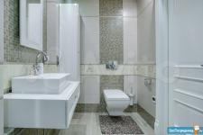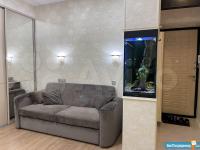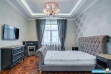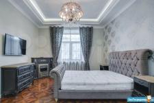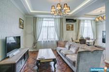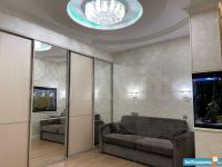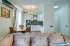 В квартире высокие потолки, стильный светлый ремонт, есть вся необходимая для комфортного проживания мебель и техника: раскладывающийся итальянский диван, рабочее место, кондиционер, посудомоечная и стиральная машины, микроволновая печь, большая джакузи, телевизор.