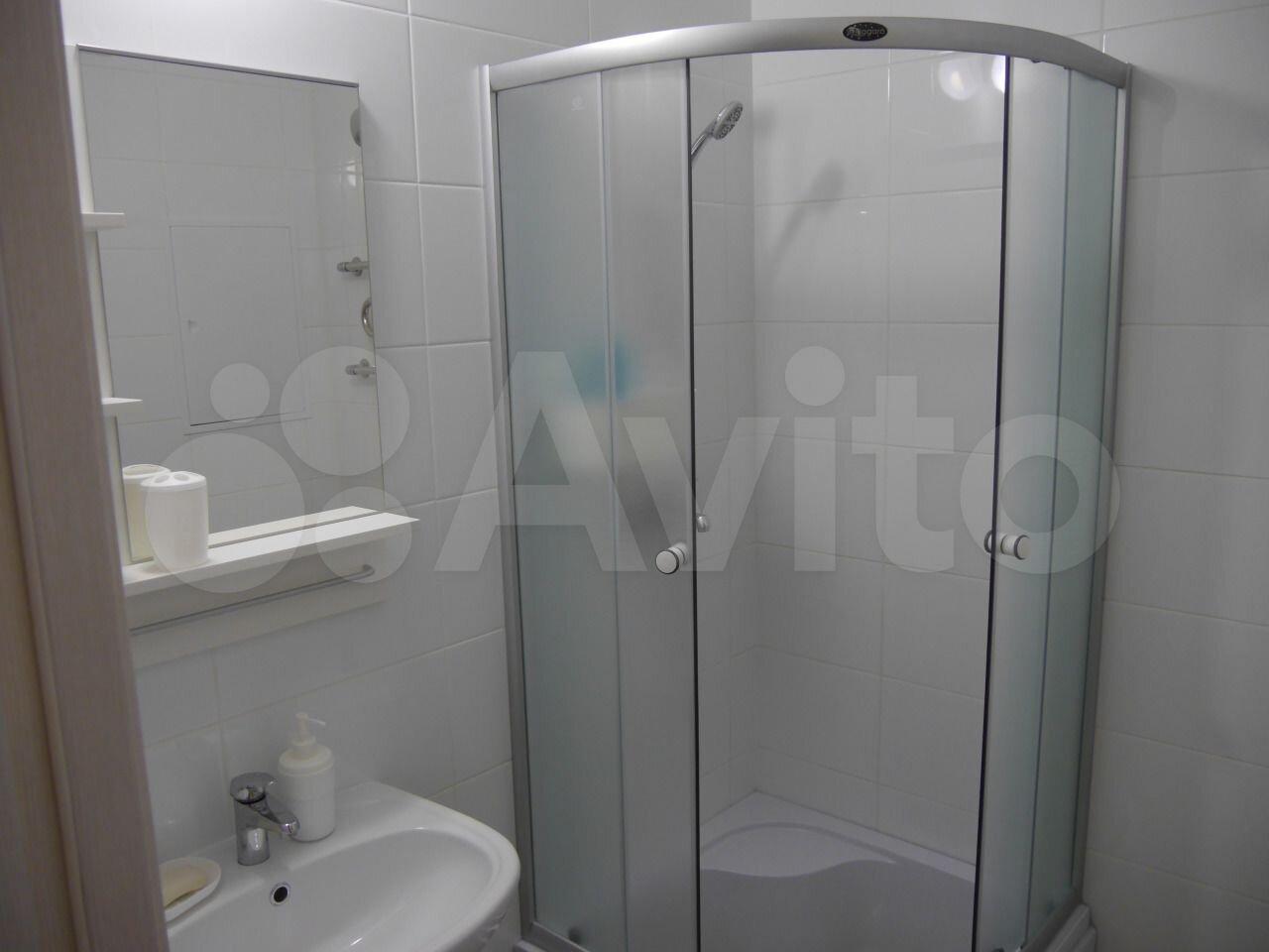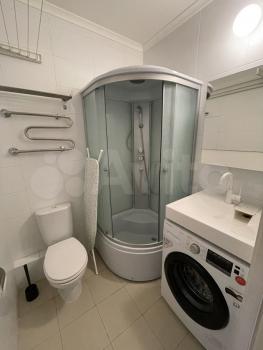 - ванная с душевой кабиной, стиралкой, зеркалом,