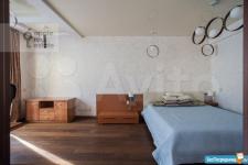 В комнате большая двухспальная кровать с новым матрасом, большой вместительный шкаф.
