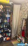 В комнате имеется кровать, стол (с тумбочкой), 2 стеллажа с полками (все вещи поместятся), напольная вешалка.