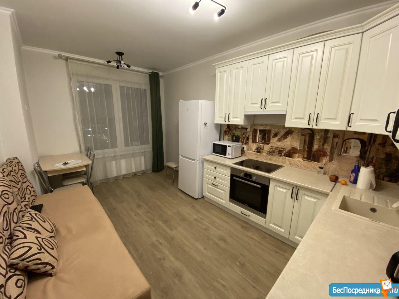 Сдаётся квартира в ЖК «Эталон-Сити», Ближайшая станция метро «Улица Скобелевская». В 10 минутах ходьбы. В квартире проведён интернет, из бытовой техники установлен новый холодильник и варочная панель, стиральная машина,телевизор микроволновая печь,утюг,фен. На кухне есть диван, а так же гардероб ( на фото нет). Новая посуда.На территории есть огромный фитнес центр и частные детские сады,сетевые продуктовые магазины. Подъезд находится под видеонаблюдением и охраной, на посту есть консьерж. Ежемесячная оплата 40 тысяч рублей + счётчики. Квартира будет сдаваться с 22 апреля.Собственник.Прошу агенства не беспокоить. Квартира будет сдаваться после 25 июля.