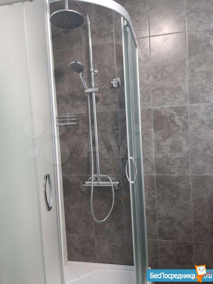 • Просторная ванная с новой сантехникой, стиральной машиной и системой хранения