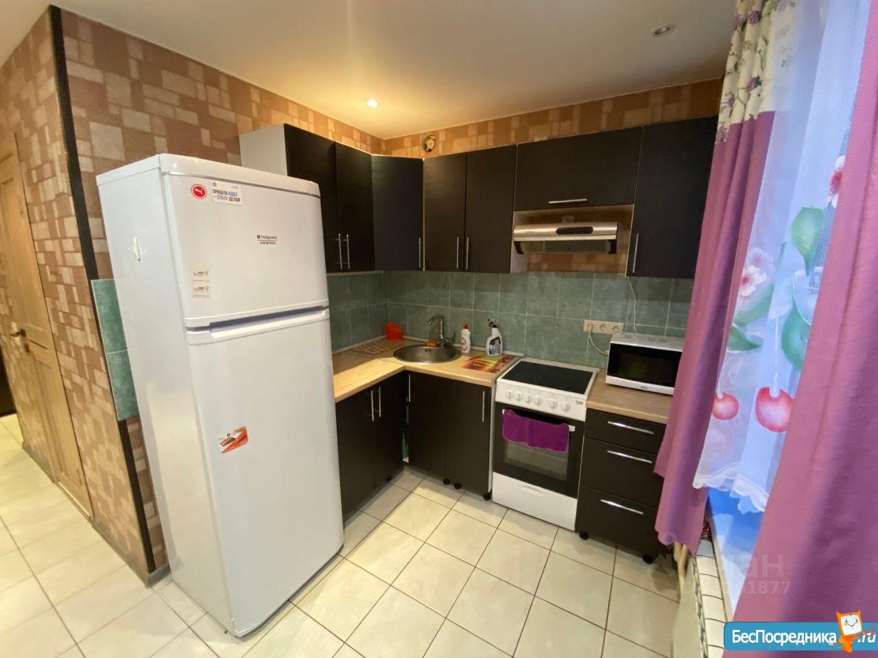 На кухне-гарнитур, электроплита, холодильник, стиральная машина,микроволновка. В комнате большой шкаф-купе. Кровать полуторная.