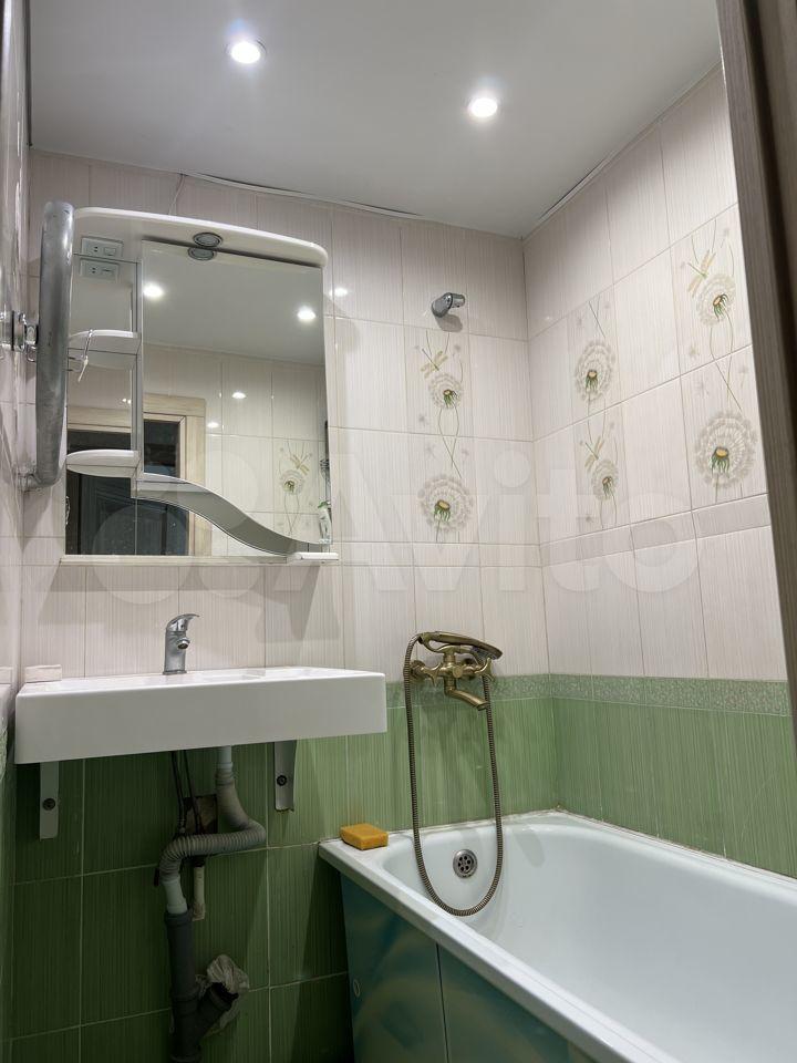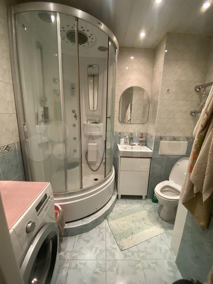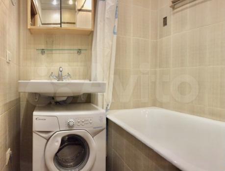 Санузел совмещен, установлена стиральная машинка. В прихожей установлен вместительный зеркальный шкаф-купе.