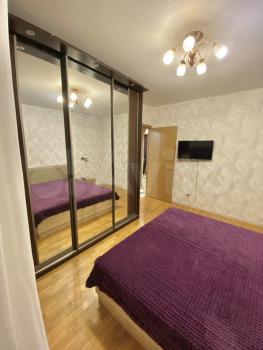 Квартира с хорошим ремонтом рядом с метро "Озёрная". В кухне гарнитур, вместительный холодильник, стиральная машина, газовая плита, немецкий смеситель, стол и табуретки. В большой комнате двуспальный диван, стол, небольшой жк телевизор. В маленькой комнате софа, журнальный столик, встроенный шкаф. В коридоре встроенный шкаф, зеркало и стелаж. В ванной и туалете вся сантехника в отличном состоянии. Балкон вместительный, длинный, остекленный, обшит вагонкой.