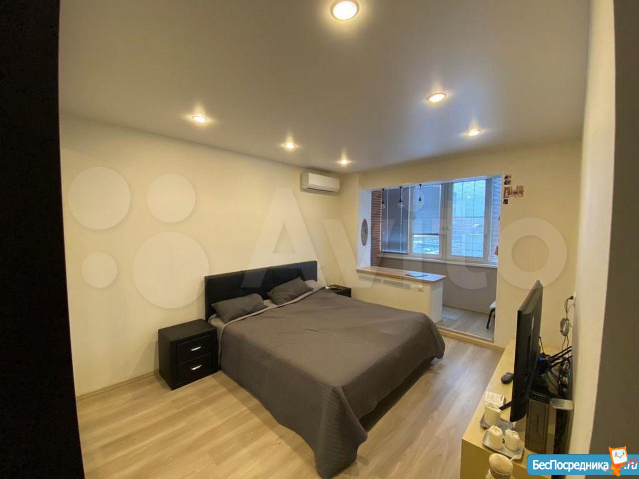 Большая двуспальная кровать 2 на 2 метра, 2 больших шкафа-купе, 1 телевизор 47 дюймов 4К