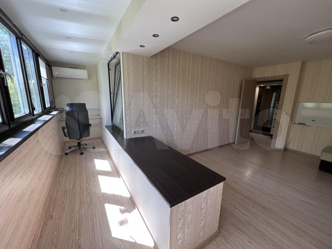 Квартира в отличном состоянии. Кондиционеры, тёплый пол. Полноценное рабочее место на тёплой лоджии. Отдельный большой гардероб, никаких шкафов.