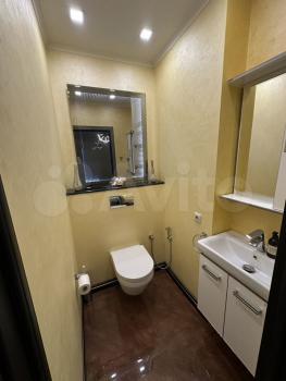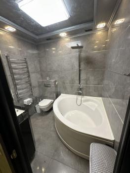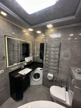 Ванная оборудована дорогой сантехникой и мебелью.