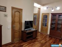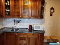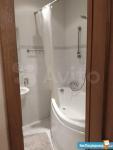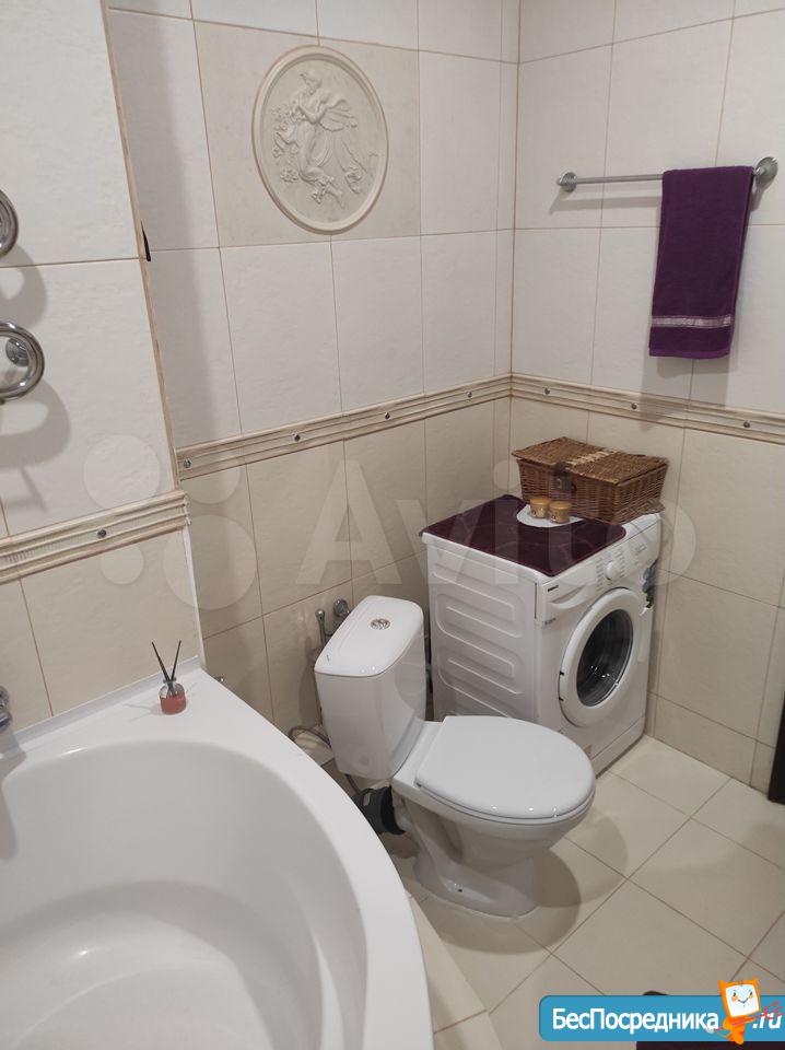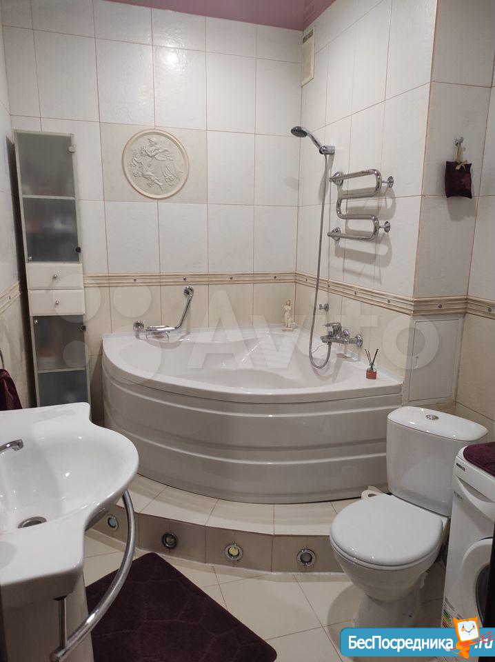 В спальне большая кровать, 2 вместительных шкафа, тумбочки. Санузел совмещенный, оснащен современной сантехникой, стиральной машинкой.