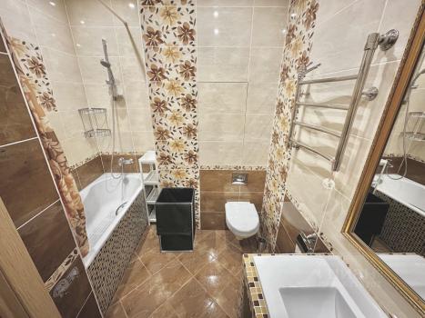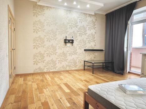 В квартире сделан евроремонт, установлена современная мебель и вся необходимая техника. В комнате есть кондиционер и удобная мебель, поэтому можно сразу заселяться и комфортно жить. Кухня оснащена холодильником и стиральной машиной. Санузел совмещённый, просторный, с ванной. Есть лоджия, окна выходят во двор, поэтому в квартире тихо и уютно.