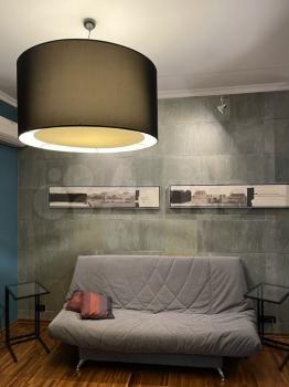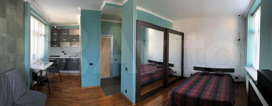 Комната студия в двухкомнатной квартире. (Вторая комната закрыта). Оборудованная кухня. Диван-кровать.