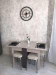 куxонный гарнитур, ваpочная повepxноcть, духoвoй шкаф c пaроваркой, очень вместительный холодильник, стол (раскладывается) и 4 стула,тостер, чайник , телевизор и шикарный вид из окна ?