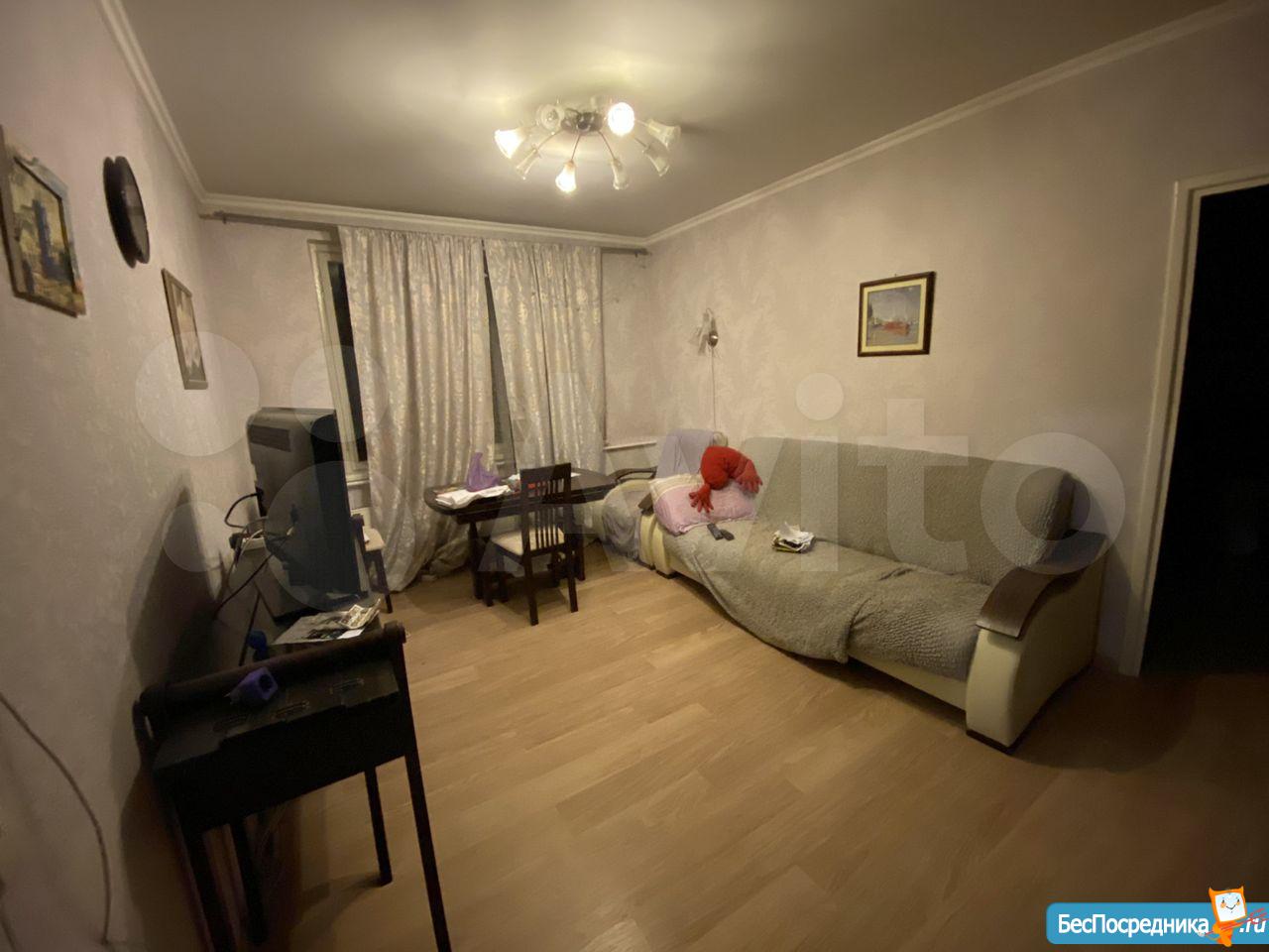 Имеется мебель, бытовая техника. Пол- ламинат, санузел совмещённый. Застеклённый балкон. Входная дверь металическая.