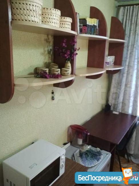 В комнате есть диван-кровать, холодильник, стол, шкаф, полки, микроволновка. Стоимость аренды: 15 000 + счётчики и интернет. Собственник. В соседней комнате проживает женщина 55 лет (работает, иногда уезжает на дачу).