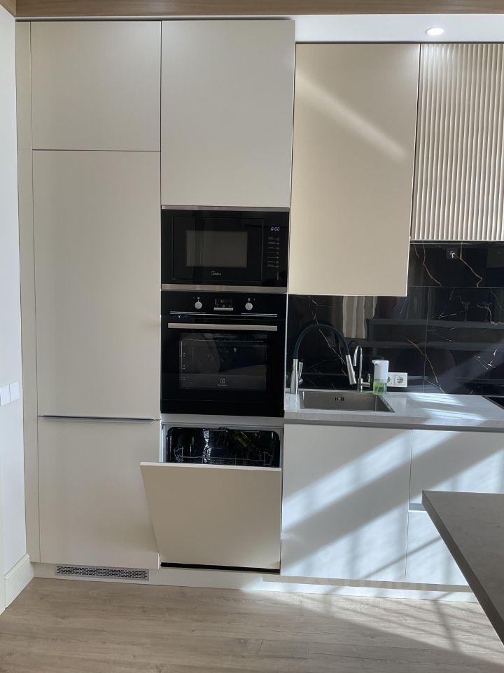 •Встроенная техника на кухне: холодильник, посудомойка, варочная панель, духовка, фильтр для воды.
