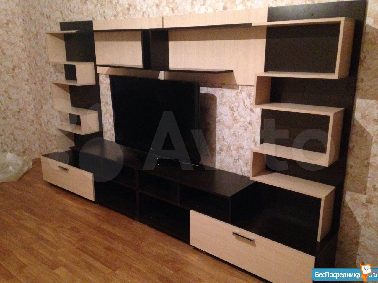 Стандартный ремонт от застройщика. Есть кухонная мебель и все необходимые для готовки принадлежности. Кровать и диван в разных комнатах. Телевизор. Возможность подключения интернета, уже проведён. Рабочий стол, шкафы.