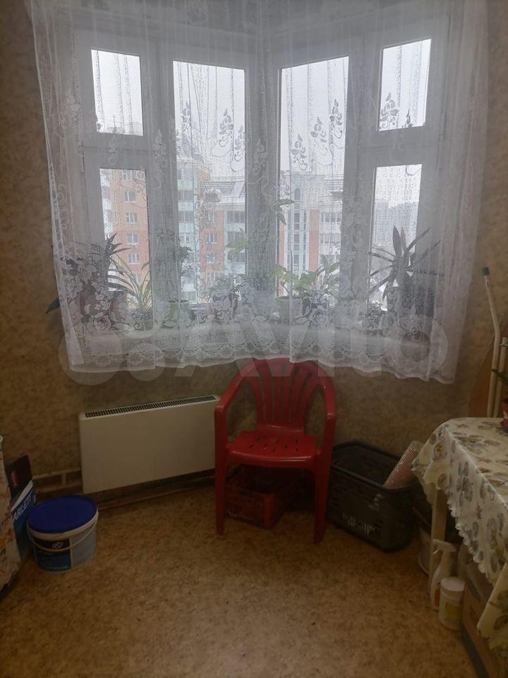 Застеклённая отделанная лоджия, окна выходят во двор, вид на зелёную зону и детскую площадку. В доме тихо.